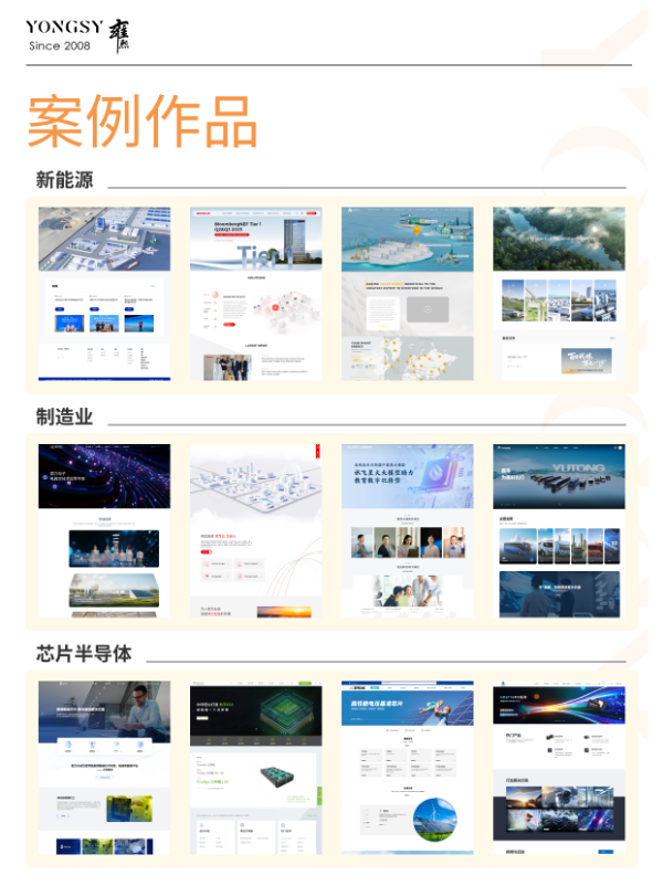 上海雍熙YONGSY创立于2008年,是国内高端网站定制与数字化营销领域的标杆服务商,深耕行业17年,始终以“数字化转型伙伴”为定位,聚焦企业官网从信息展示到价值创造的战略升级,累计服务时长超60000小时,项目交付准时率达99%以上。